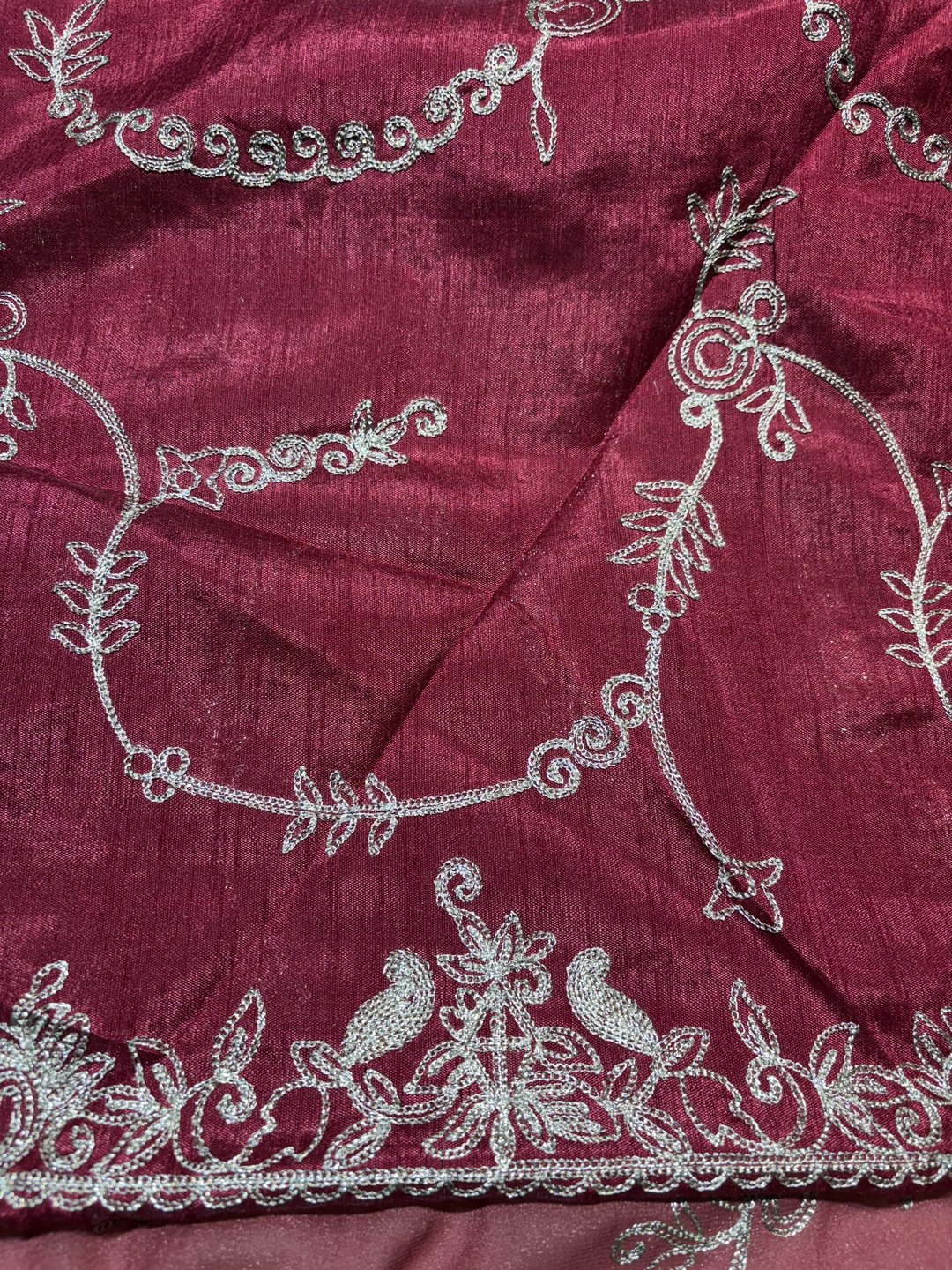 This saree features Trending Zaal Work, known for its intricate and richly detailed patterns.