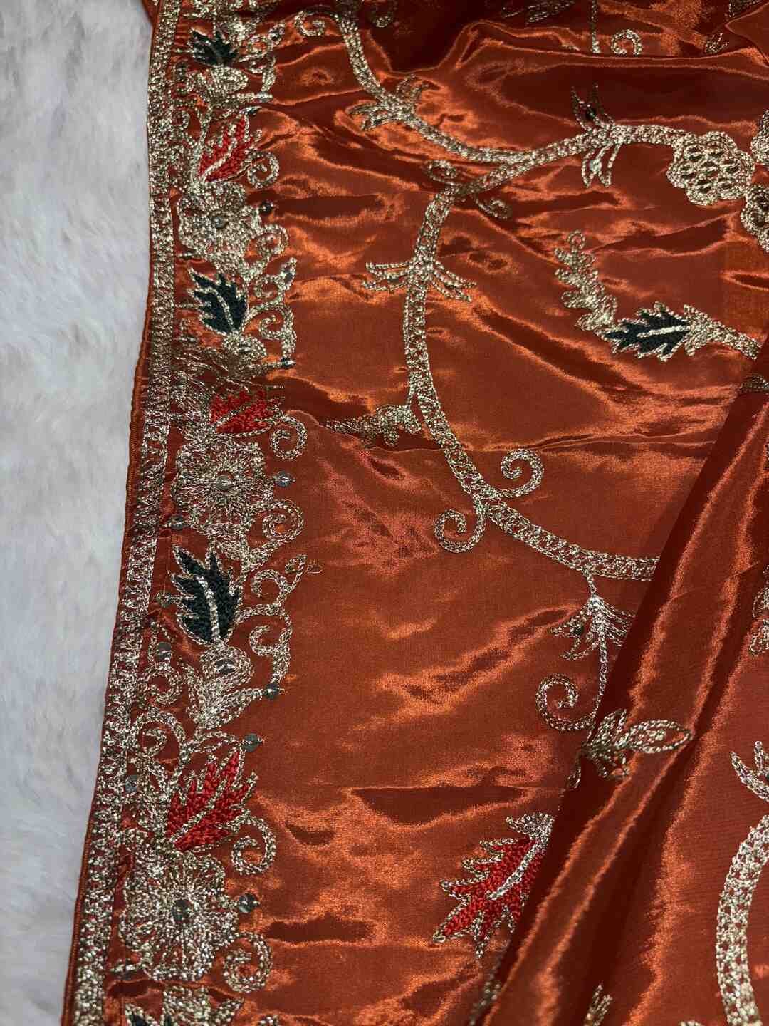 A stunning fusion of artistry: Vintage-inspired detailing on soft Silk fabric creates a timeless, graceful drape that feels classic, elegant, and effortlessly luxurious.