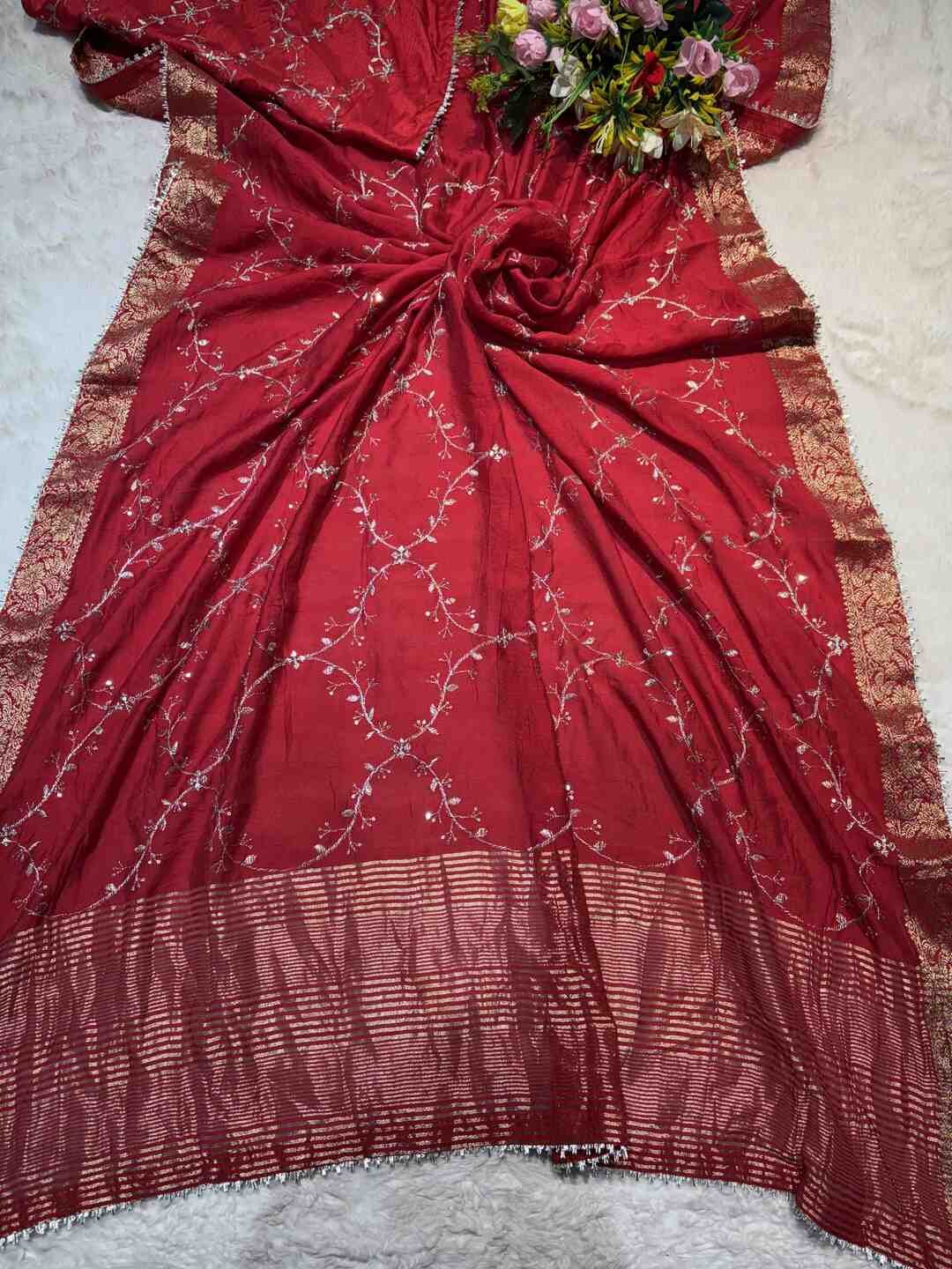 This saree delivers a graceful, festive, and richly elegant ethnic look.