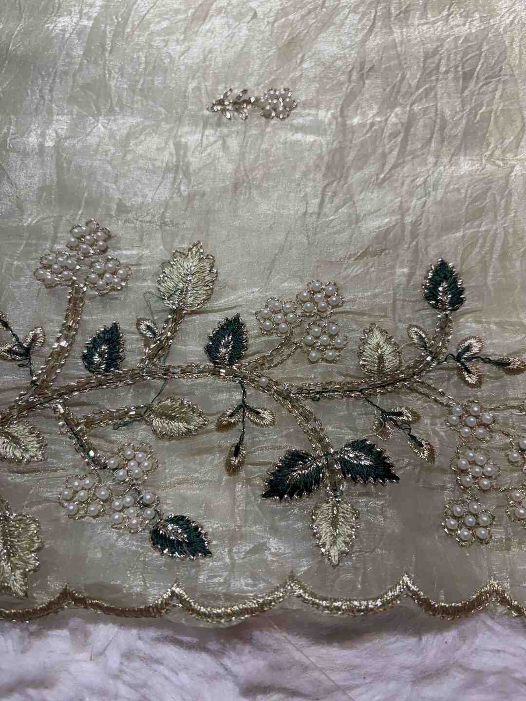 Fold carefully to protect Zardozi work